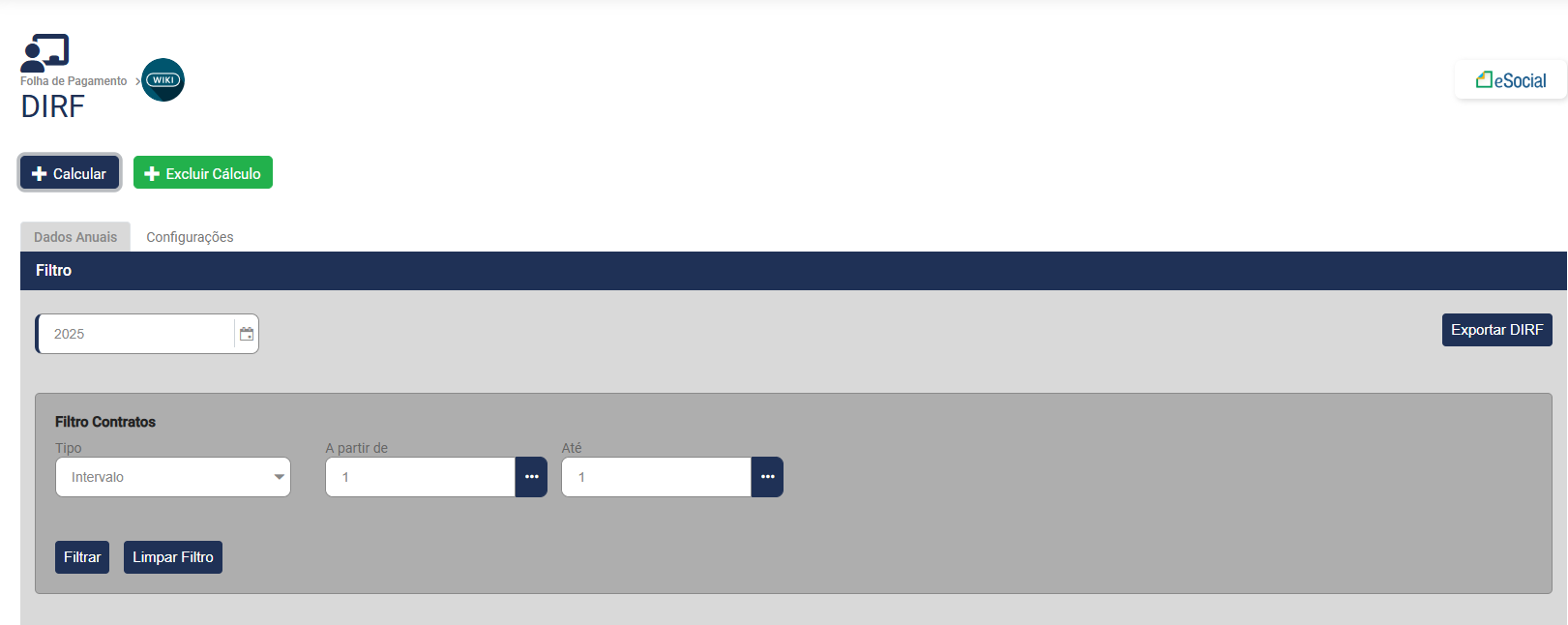 Para a correta exportação de informações para a DIRF o Módulo deve estar definido no mês de dezembro do ano de geração do arquivo 12/XXXX
