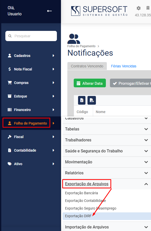 ..... Exportação para a DIRF (Declaração de Informações do Imposto de Renda Pessoa Física)