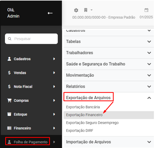 ..... Exportação para o Módulo Financeiro