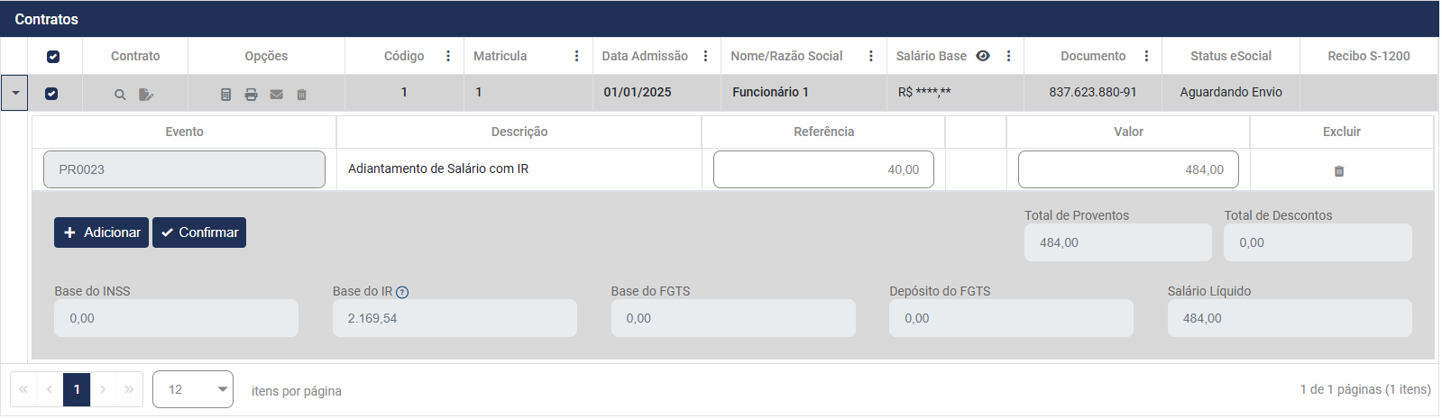 Verifique que o Adiantamento Salarial foi calculado respeitando o Percentual cadastrado anteriormente