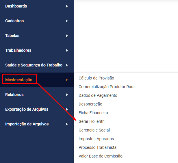 Você não conseguirá realizar a Geração dos Holleriths se os menus abaixo estiverem bloqueados: