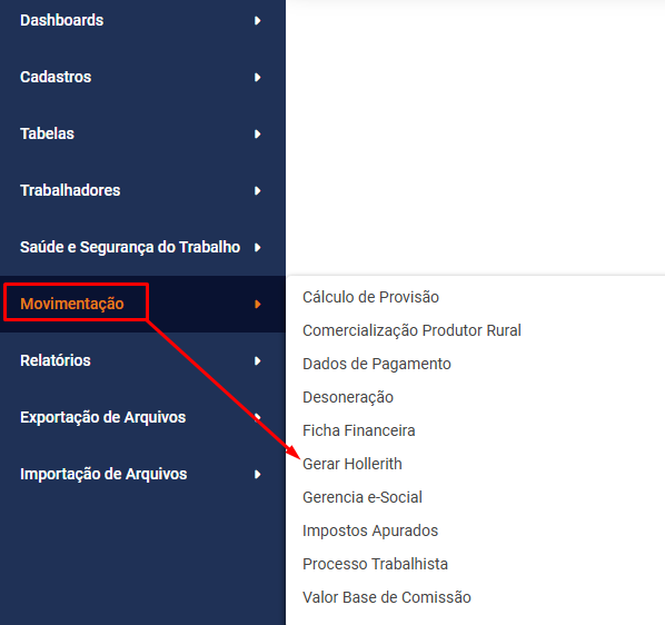 Você não conseguirá realizar a Geração dos Holleriths se os menus abaixo estiverem bloqueados: