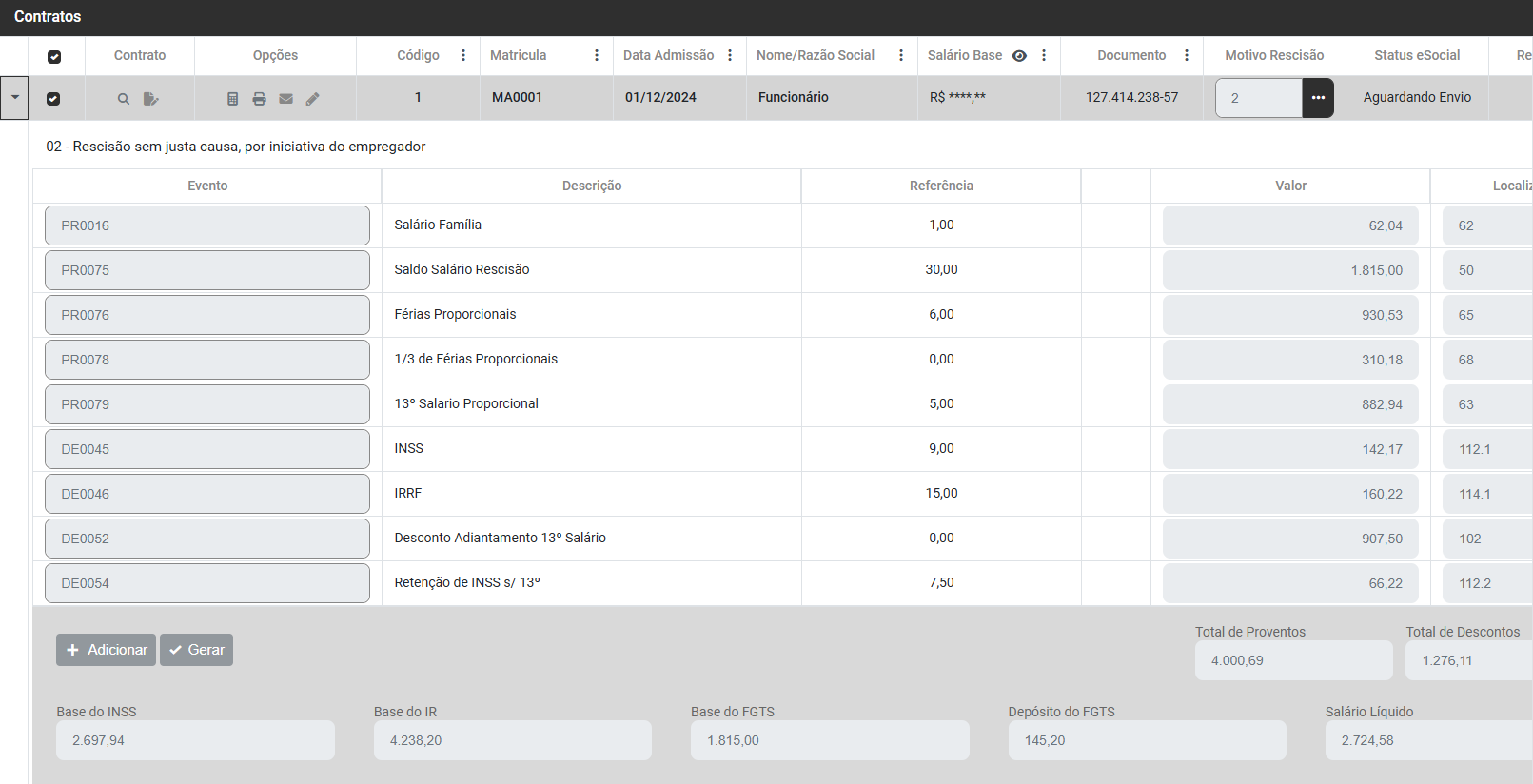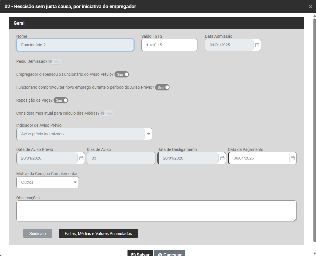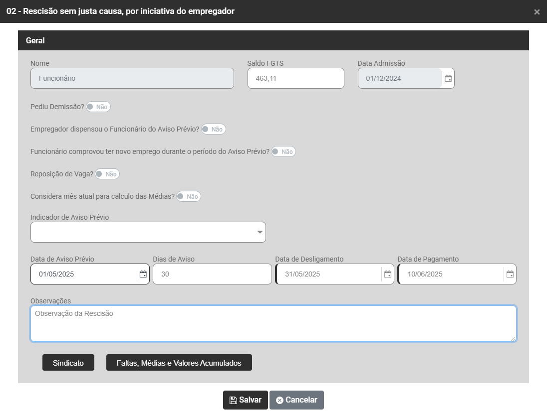 - Geração de Rescisão