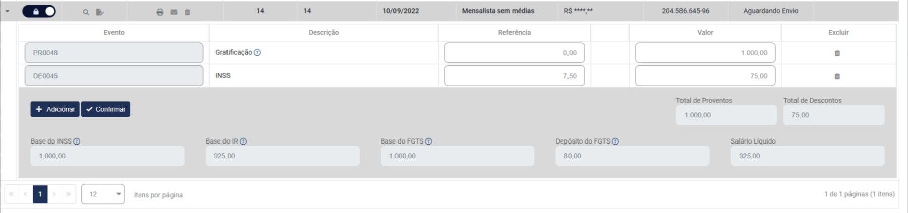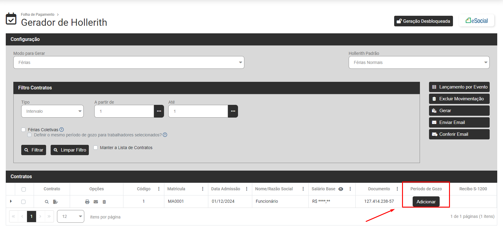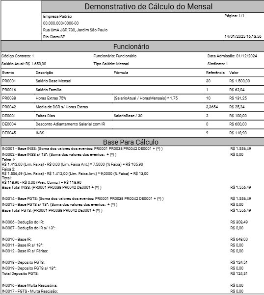 Ao clicar em Relatório você verá o Hollerith do Pagamento Mensal calculado