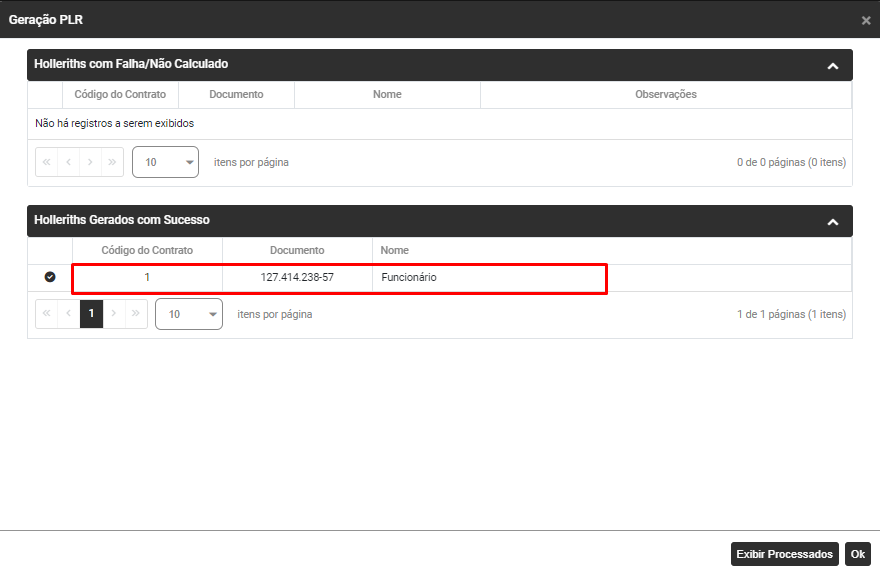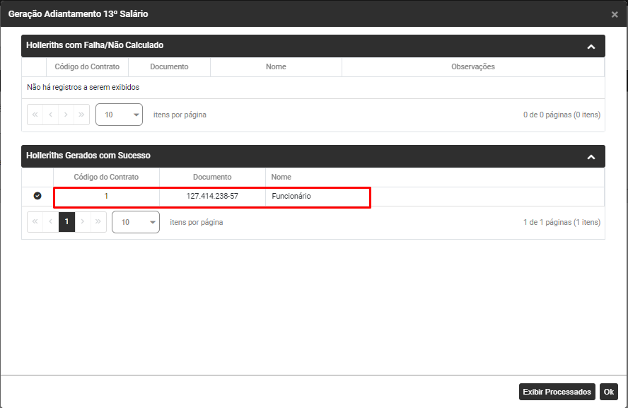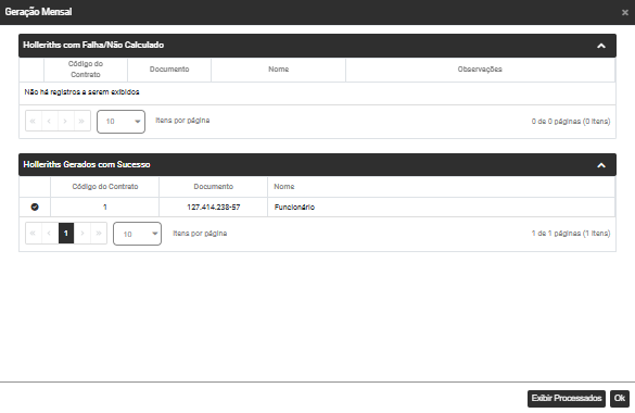 Se os Holleriths forem apresentados no campo Holleriths Gerados com Sucesso clique em OK