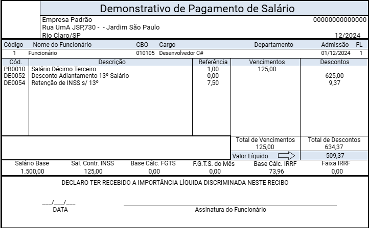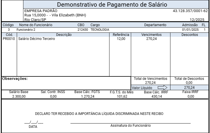 - Pagamento de 13º Salário