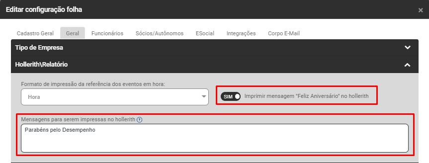 - Cadastro das Configurações da Folha de Pagamento