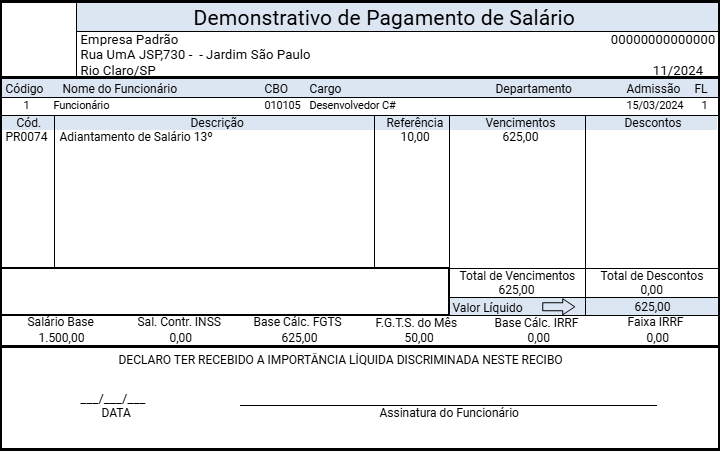 - Adiantamento de 13º Salário