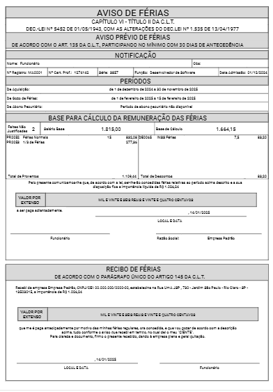 - Relatório de Aviso e Recibo de Férias