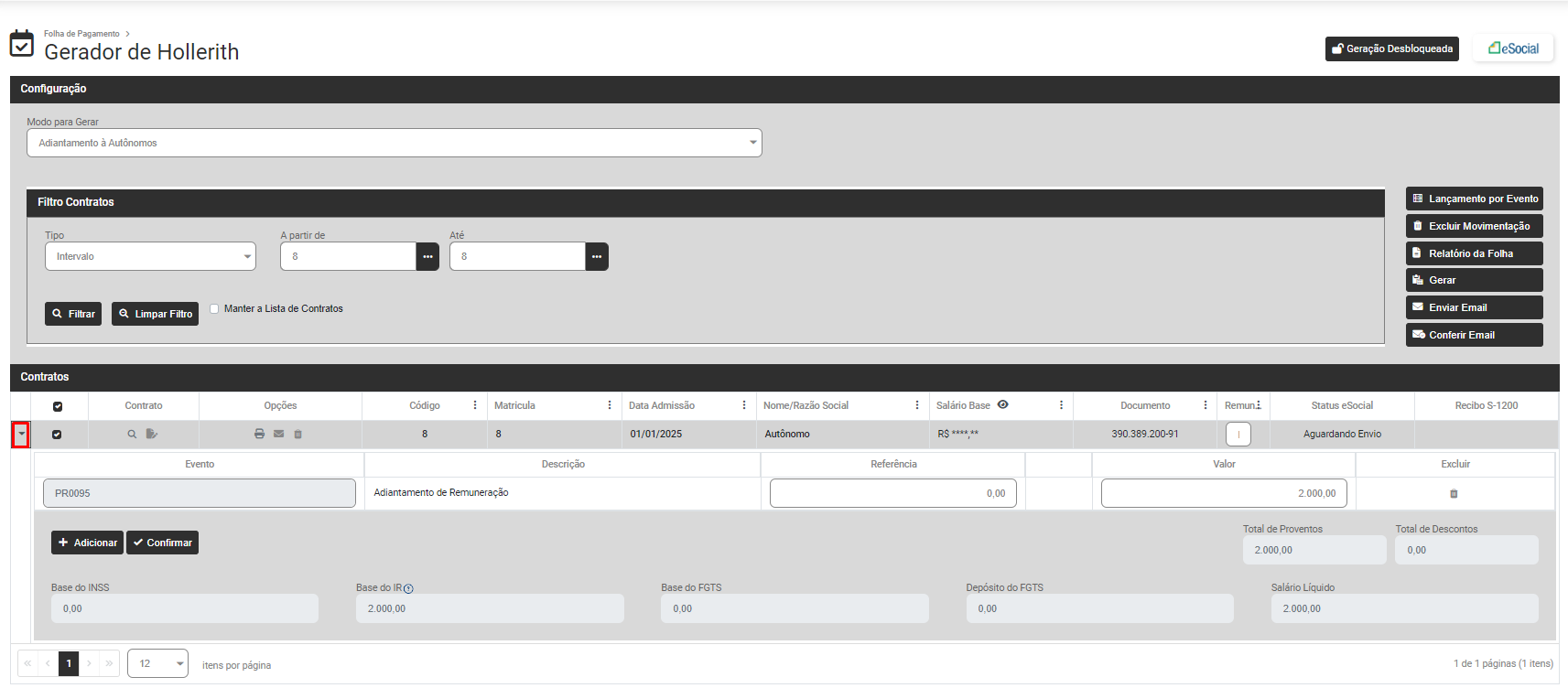 - Geração de Adiantamento de Autônomos
