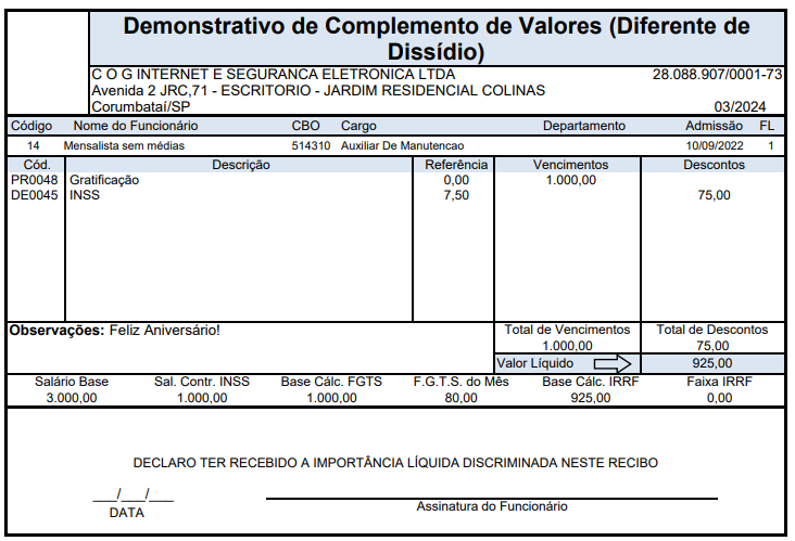 - Complemento de 13º Salário