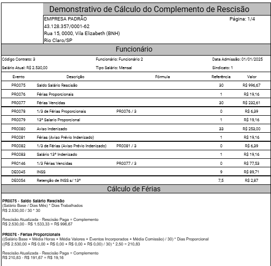 - Complemento de Rescisão