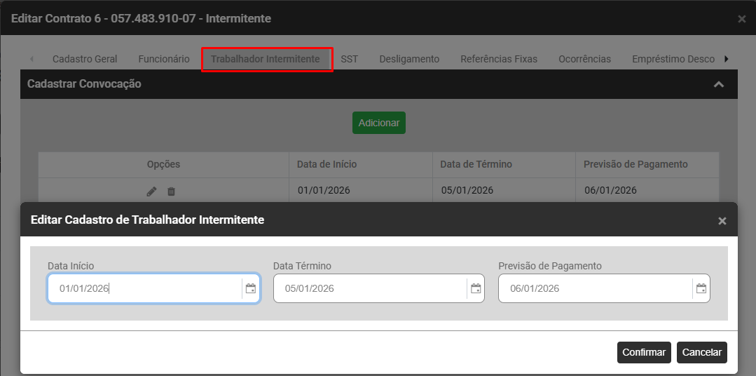 b) Será necessário que tenha sido cadastrada uma Convocação para Trabalhador Intermitente