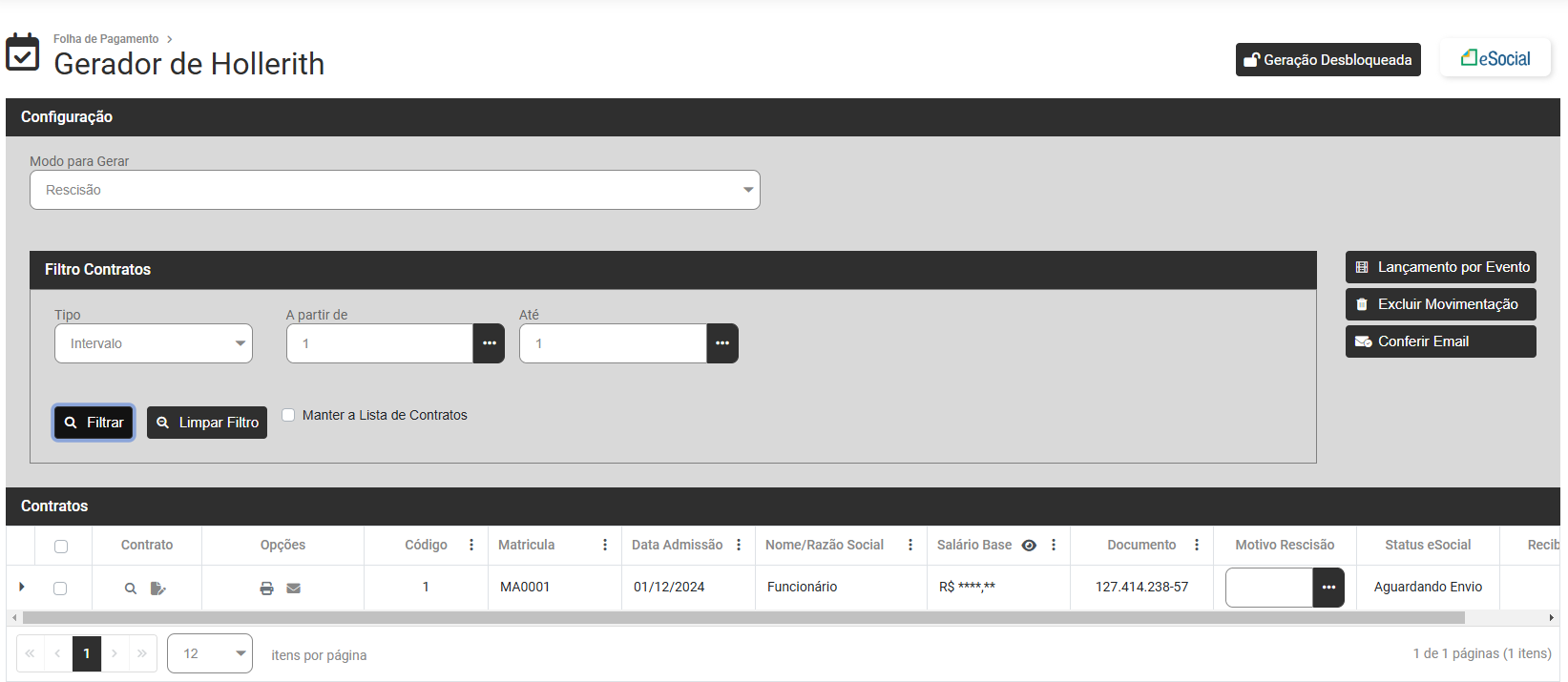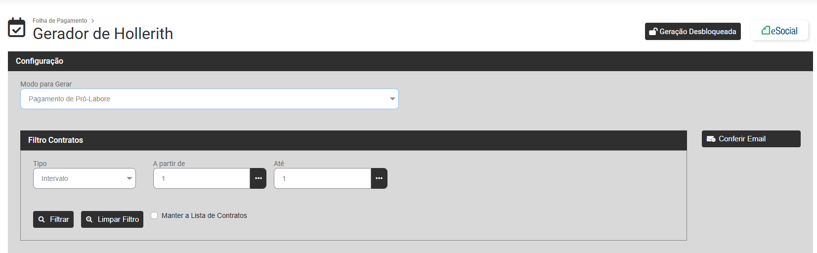 - Gerar - Gerar os Holleriths de acordo com o Modo definido e funcionários filtrados