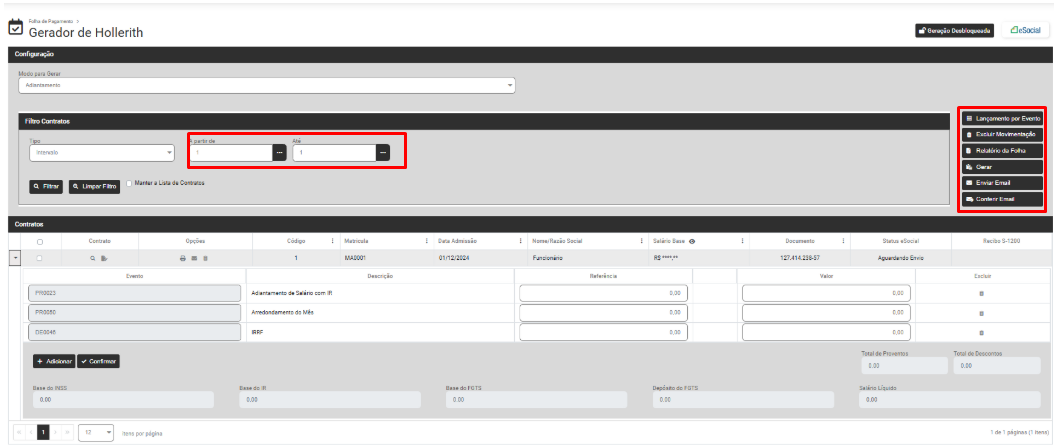 1) GERAÇÃO DE ADIANTAMENTO SALARIAL (Funcionários)