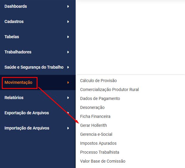 Você não conseguirá realizar a Geração dos Holleriths se os menus abaixo estiverem bloqueados: