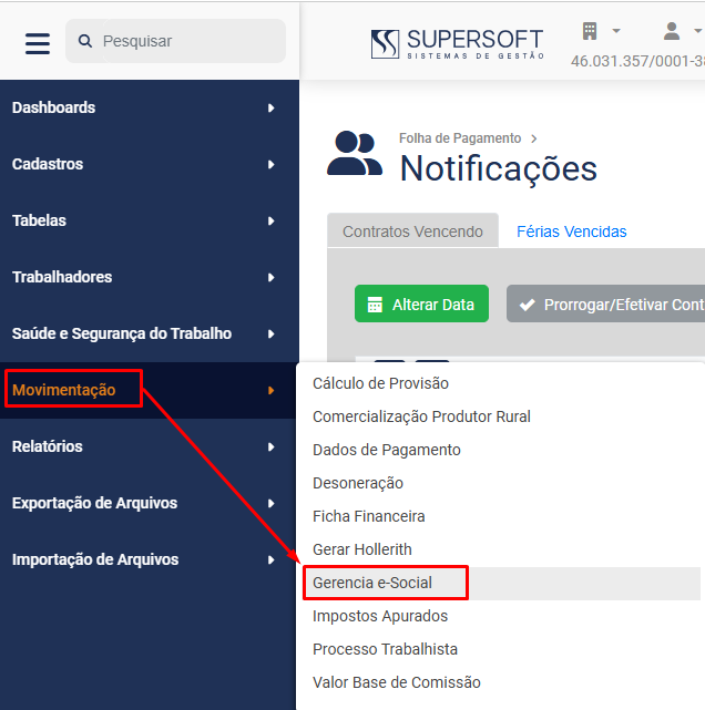 Para que você acesse o Gerenciamento do eSocial entre no menu Folha de Pagamento>Movimentação>Gerencia eSocial