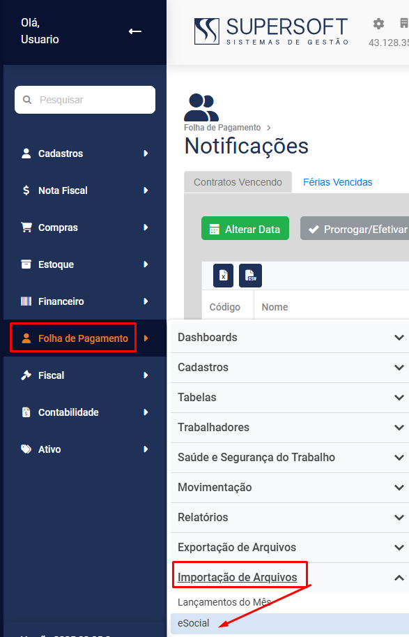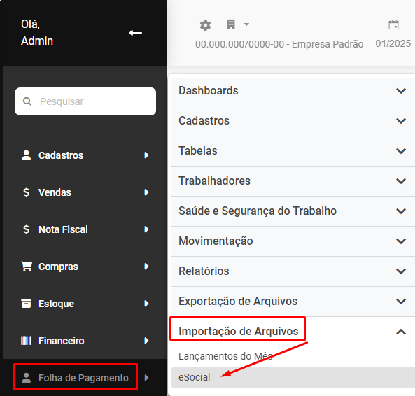 Importação do XML do eSocial