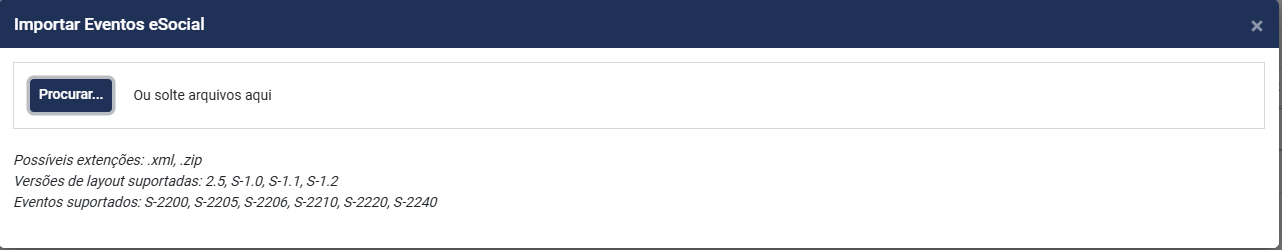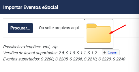 b) Arraste o arquivo que você salvou em sua máquina para a tela de Importar Eventos eSocial
