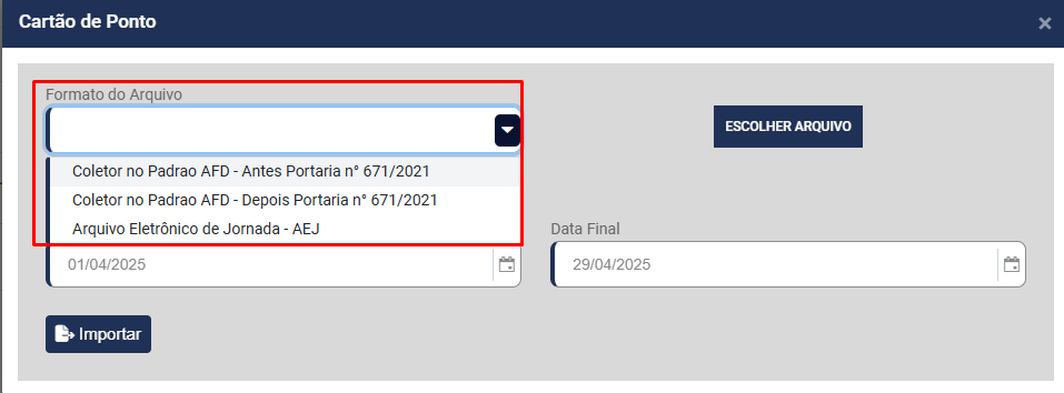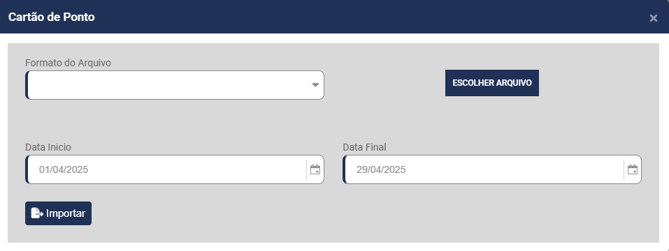 Clique no Botão existente na parte Superior da Tela - Importar Cartão Ponto