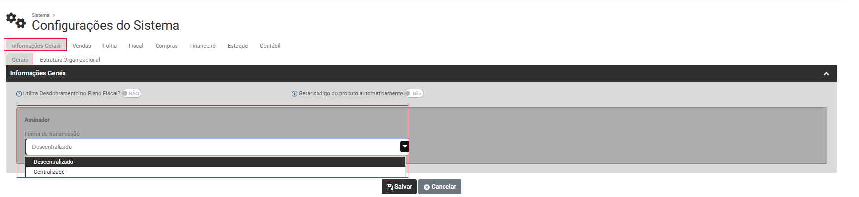 Para que você consiga definir as Informações Gerais do Assinador deverá acessar as Configurações do Sistema
