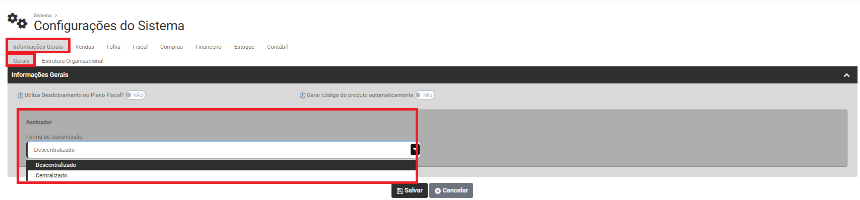 Para que você consiga definir as Informações Gerais do Assinador deverá acessar as Configurações do Módulo