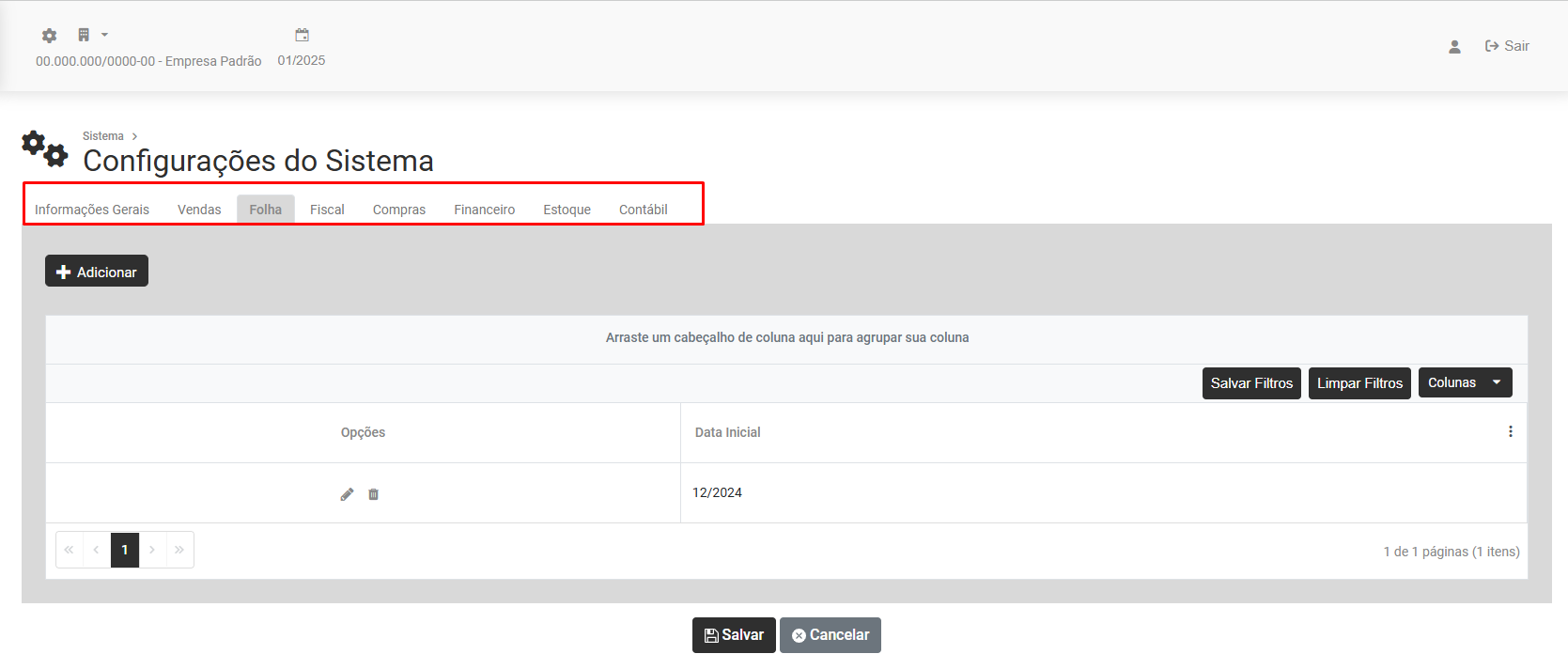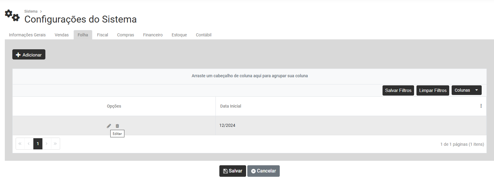 • Editar as Configurações do Módulo Folha de Pagamento