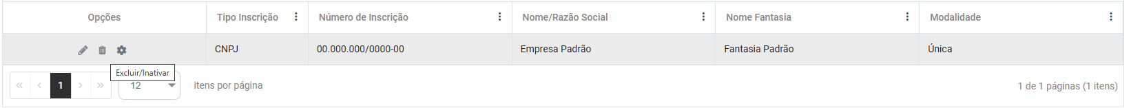 • através deste botão você poderá Excluir a Empresa, Inativar ou Cancelar