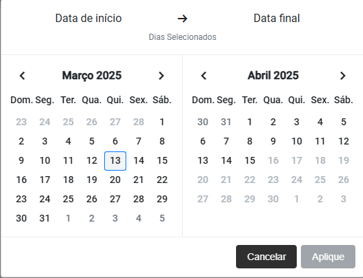 a) Acesse Alterar Data para pesquisar um novo período, diferente do período definido no Módulo