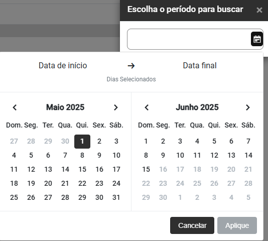 a) Acesse Alterar Data para pesquisar um novo período, diferente do período definido no Módulo