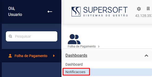 Você poderá também acessar o menu Folha de Pagamento>Notificações
