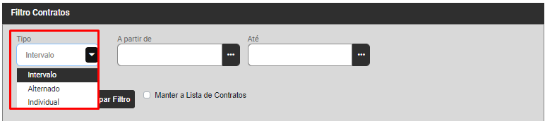 Será apresentada a Tela para que você realize o Filtro das informações, que poderá ser por: