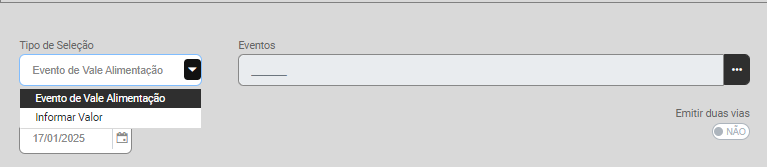 • Informar Valor - Para quando não existe um evento de pagamento do Vale Alimentação, neste caso você deverá informar o valor que irá constar no Recibo de Vale Alimentação