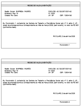 • Evento de Vale Alimentação - para quando o Vale Alimentação foi pago no Hollerith do Trabalhador, neste caso você deverá informar o Código do Evento de Provento que consta no Hollerith do Trabalhador e o Sistema trará o Recibo de Vale Alimentação apresentando o valor calculado para o evento