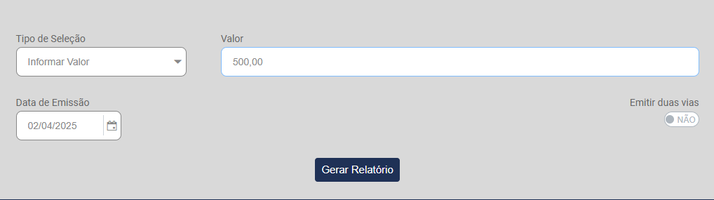 Informe também se o Recibo deverá ser emitido em duas vias