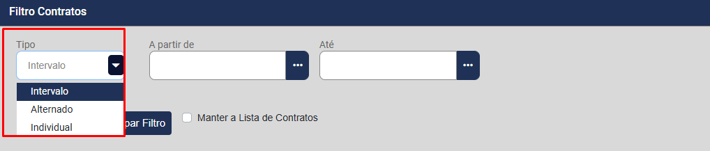 O Módulo abrirá o campo para definição do Tipo de Seleção: