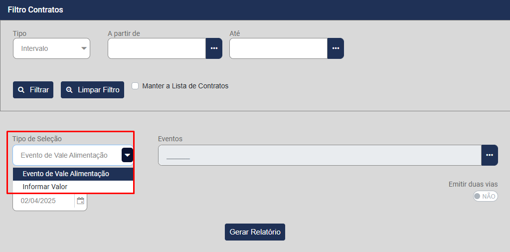 - Informar Valor - Para quando não existe um evento de pagamento do Vale Alimentação, neste caso você deverá informar o valor que irá constar no Recibo de Vale Alimentação
