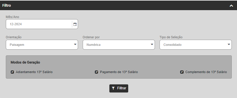 - Modos de Geração - Adiantamento de 13º Salário, Pagamento de 13º Salário, Complemento de 13º Salário