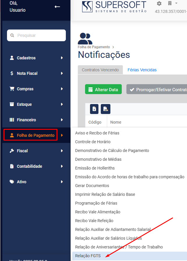 Para imprimir a Relação de FGTS acesse o menu Folha de Pagamento>Relatórios>Relação FGTS