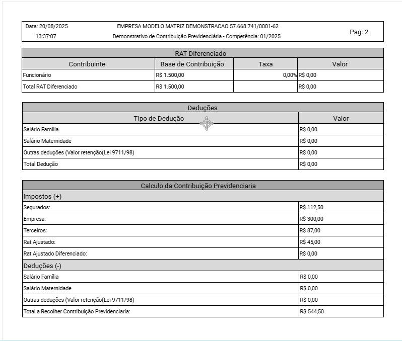 RAT Diferenciado - Deduções - Cálculo da Contribuição Previdenciária