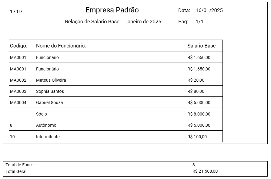 O Módulo apresentará a Relação de Salário Base dos Trabalhadores