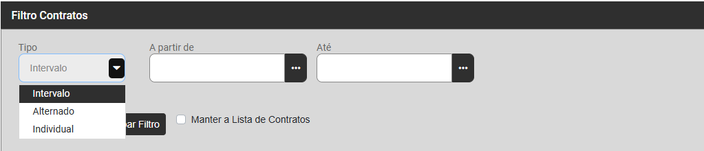 Será apresentada a tela para que você defina o Filtro de informações, que poderá ser:
