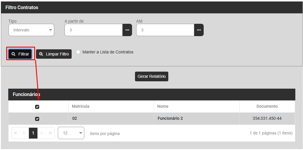 Após a definição do filtro, clique em Filtrar