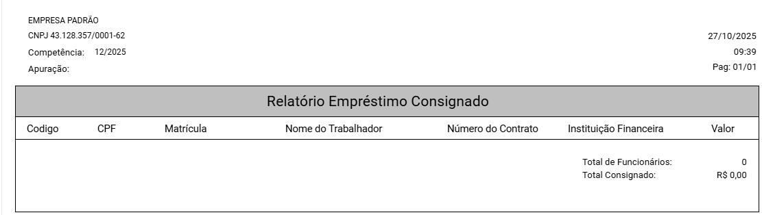O Sistema irá apresentar o Relatório do Empréstimo Consignado filtrado, contendo as informações