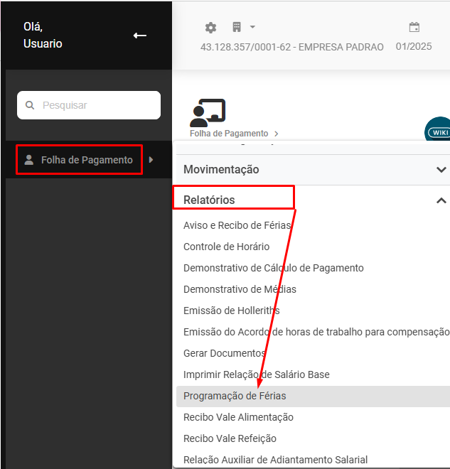 Para imprimir o Relatório de Programação de Férias, acesse o menu Folha de Pagamento>Relatórios>Programação de Férias
