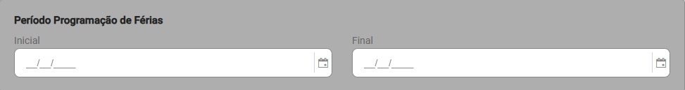 Período Programação de Férias, se você deixar este campo em branco serão apresentadas todas as Programações de acordo com o filtro anterior