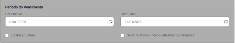 Você poderá ainda, definir se é para Destacar Linhas e Gerar relatórios individualmente por empresa