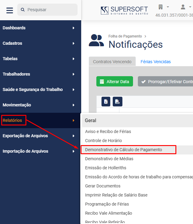 Para que você imprima o Relatório Demonstrativo de Cálculo de Pagamento deverá acessar o menu Folha de Pagamento>Relatórios>Demonstrativo de Cálculo de Pagamento