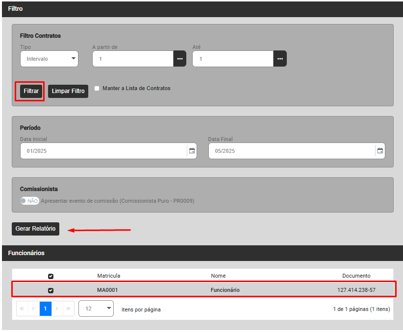 Se o funcionário for Comissionista você poderá ainda definir se deverá Apresentar evento de comissão (comissionista puro - PR0009)