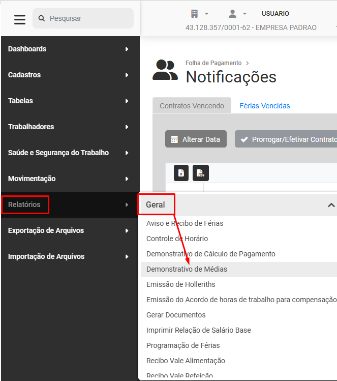 Para a impressão do Relatório Demonstrativo de Médias você deverá acessar o menu Relatórios>Geral>Demonstrativo de Médias